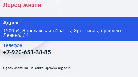 Ларец жизни по адресу 150054, Ярославская область, Ярославль, проспект Ленина, 34 в дальнейшем Организация, размещена в следующих категориях: