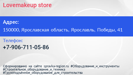 Lovemakeup.store по адресу 150000, Ярославская область, Ярославль, Победы, 41 в дальнейшем Организация, размещена в следующих категориях: