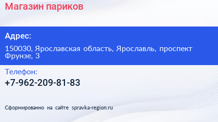 Магазин париков по адресу 150030, Ярославская область, Ярославль, проспект Фрунзе, 3 в дальнейшем Организация, размещена в следующих категориях: