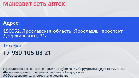 Максавит, сеть аптек по адресу 150052, Ярославская область, Ярославль, проспект Дзержинского, 31а в дальнейшем Организация, размещена в следующих категориях: