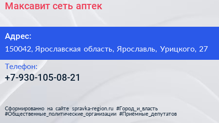Максавит, сеть аптек по адресу 150042, Ярославская область, Ярославль, Урицкого, 27 в дальнейшем Организация, размещена в следующих категориях: