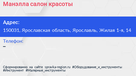 Манэлла, салон красоты по адресу 150031, Ярославская область, Ярославль, Жилая 1-я, 14 в дальнейшем Организация, размещена в следующих категориях: