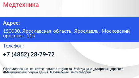 Медтехника по адресу 150030, Ярославская область, Ярославль, Московский проспект, 115 в дальнейшем Организация, размещена в следующих категориях: