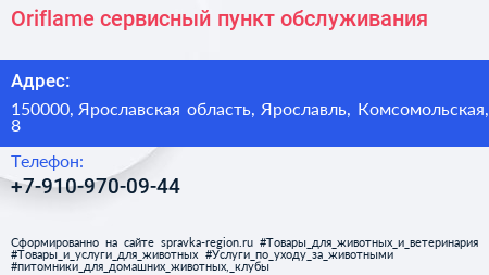 Oriflame, сервисный пункт обслуживания по адресу 150000, Ярославская область, Ярославль, Комсомольская, 8 в дальнейшем Организация, размещена в следующих категориях: