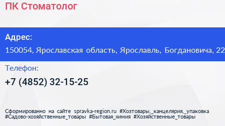 ПК Стоматолог по адресу 150054, Ярославская область, Ярославль, Богдановича, 22 в дальнейшем Организация, размещена в следующих категориях: