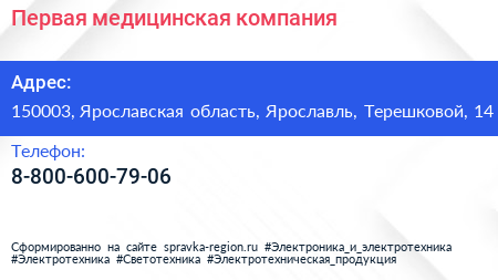 Первая медицинская компания по адресу 150003, Ярославская область, Ярославль, Терешковой, 14 в дальнейшем Организация, размещена в следующих категориях: