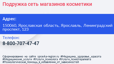 Подружка, сеть магазинов косметики по адресу 150060, Ярославская область, Ярославль, Ленинградский проспект, 123 в дальнейшем Организация, размещена в следующих категориях: