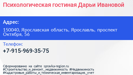 Психологическая гостиная Дарьи Ивановой по адресу 150040, Ярославская область, Ярославль, проспект Октября, 56 в дальнейшем Организация, размещена в следующих категориях: