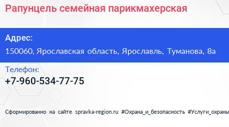 Рапунцель, семейная парикмахерская по адресу 150060, Ярославская область, Ярославль, Туманова, 8а в дальнейшем Организация, размещена в следующих категориях: