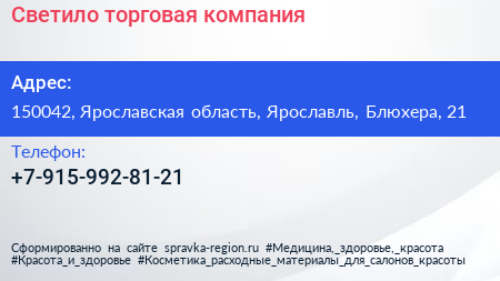 Светило, торговая компания по адресу 150042, Ярославская область, Ярославль, Блюхера, 21 в дальнейшем Организация, размещена в следующих категориях: