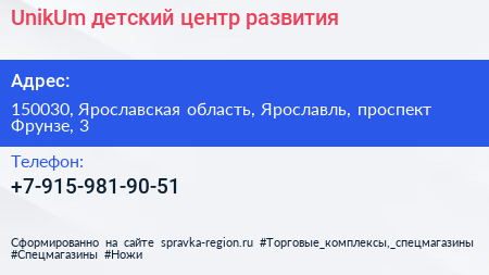 UnikUm, детский центр развития по адресу 150030, Ярославская область, Ярославль, проспект Фрунзе, 3 в дальнейшем Организация, размещена в следующих категориях: