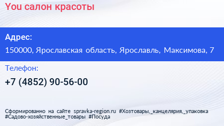 You, салон красоты по адресу 150000, Ярославская область, Ярославль, Максимова, 7 в дальнейшем Организация, размещена в следующих категориях: