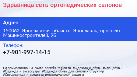 Здравница, сеть ортопедических салонов по адресу 150062, Ярославская область, Ярославль, проспект Машиностроителей, 9Б в дальнейшем Организация, размещена в следующих категориях:
