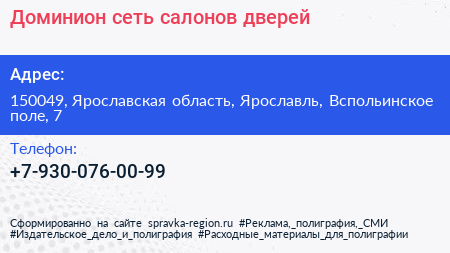 Доминион, сеть салонов дверей по адресу 150049, Ярославская область, Ярославль, Вспольинское поле, 7 в дальнейшем Организация, размещена в следующих категориях: