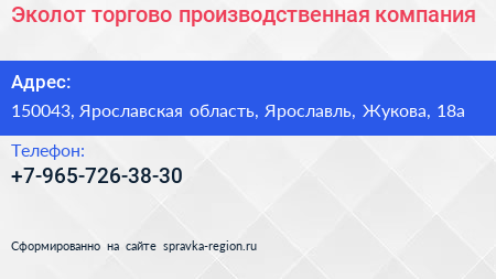 Эколот, торгово-производственная компания по адресу 150043, Ярославская область, Ярославль, Жукова, 18а в дальнейшем Организация, размещена в следующих категориях: