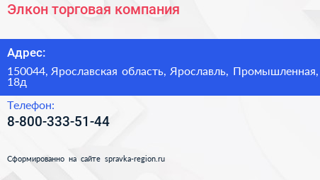 Элкон, торговая компания по адресу 150044, Ярославская область, Ярославль, Промышленная, 18д в дальнейшем Организация, размещена в следующих категориях: