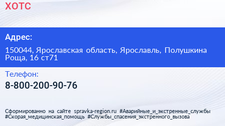 ХОТС по адресу 150044, Ярославская область, Ярославль, Полушкина Роща, 16 ст71 в дальнейшем Организация, размещена в следующих категориях: