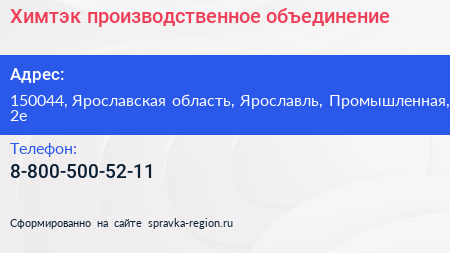 Химтэк, производственное объединение по адресу 150044, Ярославская область, Ярославль, Промышленная, 2е в дальнейшем Организация, размещена в следующих категориях: