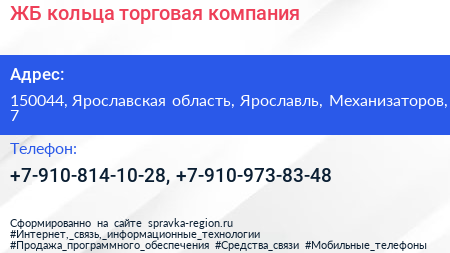 ЖБ-кольца, торговая компания по адресу 150044, Ярославская область, Ярославль, Механизаторов, 7 в дальнейшем Организация, размещена в следующих категориях: