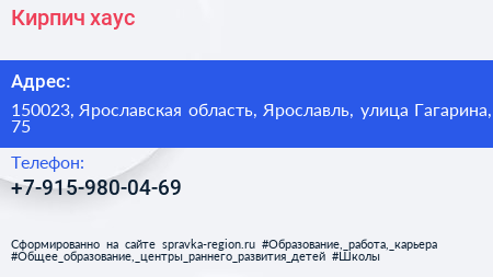 Кирпич хаус по адресу 150023, Ярославская область, Ярославль, улица Гагарина, 75 в дальнейшем Организация, размещена в следующих категориях: