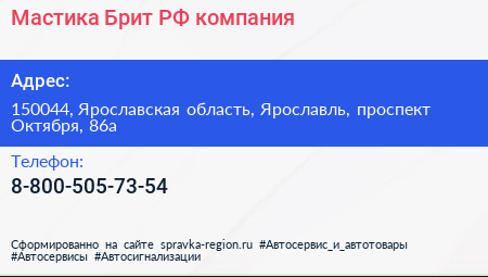 Мастика Брит РФ, компания по адресу 150044, Ярославская область, Ярославль, проспект Октября, 86а в дальнейшем Организация, размещена в следующих категориях: