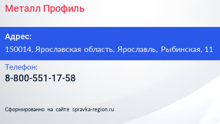 Металл Профиль по адресу 150014, Ярославская область, Ярославль, Рыбинская, 11 в дальнейшем Организация, размещена в следующих категориях: