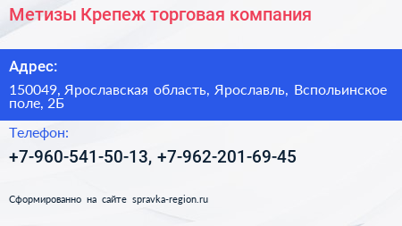 Метизы+Крепеж, торговая компания по адресу 150049, Ярославская область, Ярославль, Вспольинское поле, 2Б в дальнейшем Организация, размещена в следующих категориях: