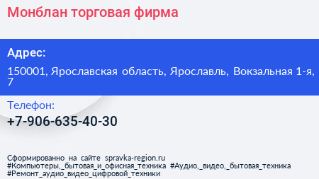 Монблан, торговая фирма по адресу 150001, Ярославская область, Ярославль, Вокзальная 1-я, 7 в дальнейшем Организация, размещена в следующих категориях: