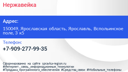 Нержавейка по адресу 150049, Ярославская область, Ярославль, Вспольинское поле, 3 к5 в дальнейшем Организация, размещена в следующих категориях: