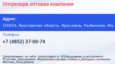Оптрезерв, оптовая компания по адресу 150014, Ярославская область, Ярославль, Рыбинская, 44а в дальнейшем Организация, размещена в следующих категориях: