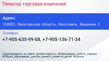 Пинагор, торговая компания по адресу 150001, Ярославская область, Ярославль, Вишняки, 1 в дальнейшем Организация, размещена в следующих категориях: