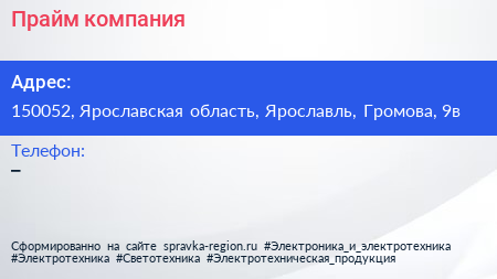 Прайм, компания по адресу 150052, Ярославская область, Ярославль, Громова, 9в в дальнейшем Организация, размещена в следующих категориях: