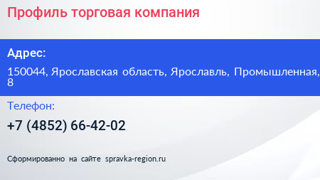 Профиль, торговая компания по адресу 150044, Ярославская область, Ярославль, Промышленная, 8 в дальнейшем Организация, размещена в следующих категориях: