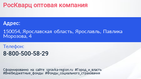 РосКварц, оптовая компания по адресу 150054, Ярославская область, Ярославль, Павлика Морозова, 4 в дальнейшем Организация, размещена в следующих категориях:
