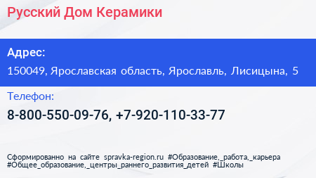 Русский Дом Керамики по адресу 150049, Ярославская область, Ярославль, Лисицына, 5 в дальнейшем Организация, размещена в следующих категориях:
