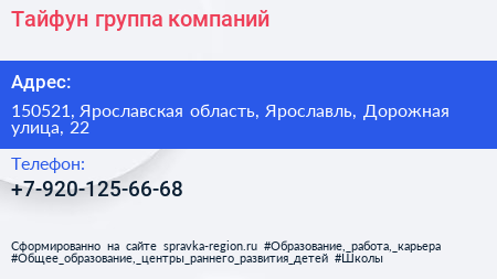 Тайфун, группа компаний по адресу 150521, Ярославская область, Ярославль, Дорожная улица, 22 в дальнейшем Организация, размещена в следующих категориях: