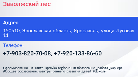 Заволжский лес по адресу 150510, Ярославская область, Ярославль, улица Луговая, 11 в дальнейшем Организация, размещена в следующих категориях: