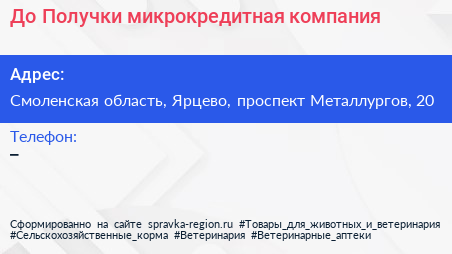 До Получки, микрокредитная компания по адресу Смоленская область, Ярцево, проспект Металлургов, 20 в дальнейшем Организация, размещена в следующих категориях: