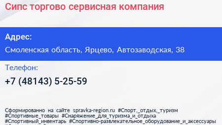 Сипс, торгово-сервисная компания по адресу Смоленская область, Ярцево, Автозаводская, 38 в дальнейшем Организация, размещена в следующих категориях: