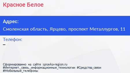Красное & Белое по адресу Смоленская область, Ярцево, проспект Металлургов, 11 в дальнейшем Организация, размещена в следующих категориях: