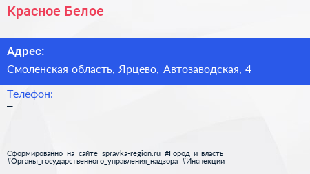 Красное & Белое по адресу Смоленская область, Ярцево, Автозаводская, 4 в дальнейшем Организация, размещена в следующих категориях: