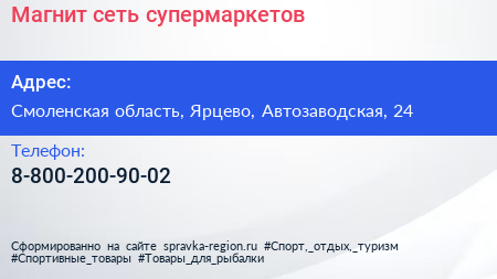 Магнит, сеть супермаркетов по адресу Смоленская область, Ярцево, Автозаводская, 24 в дальнейшем Организация, размещена в следующих категориях: