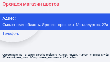 Орхидея, магазин цветов по адресу Смоленская область, Ярцево, проспект Металлургов, 27а в дальнейшем Организация, размещена в следующих категориях: