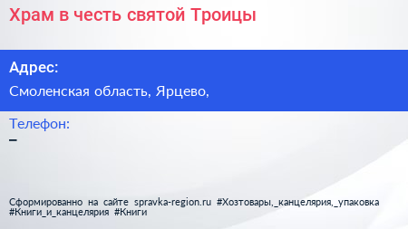 Храм в честь святой Троицы по адресу Смоленская область, Ярцево, в дальнейшем Организация, размещена в следующих категориях: