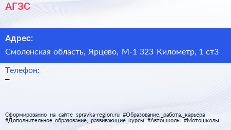 АГЗС по адресу Смоленская область, Ярцево, М-1 323 Километр, 1 ст3 в дальнейшем Организация, размещена в следующих категориях: