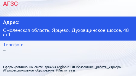 АГЗС по адресу Смоленская область, Ярцево, Духовщинское шоссе, 48 ст1 в дальнейшем Организация, размещена в следующих категориях: