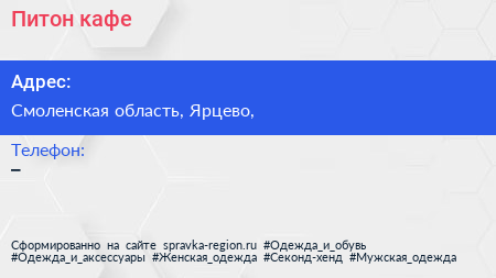 Питон, кафе по адресу Смоленская область, Ярцево, в дальнейшем Организация, размещена в следующих категориях: