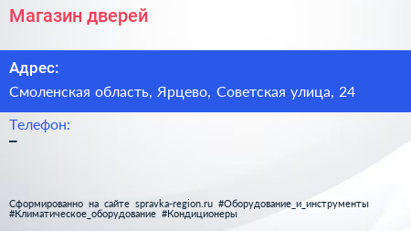 Магазин дверей по адресу Смоленская область, Ярцево, Советская улица, 24 в дальнейшем Организация, размещена в следующих категориях: