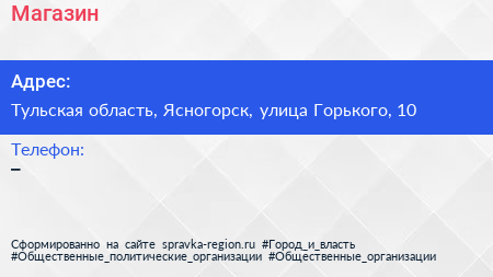 Магазин по адресу Тульская область, Ясногорск, улица Горького, 10 в дальнейшем Организация, размещена в следующих категориях:
