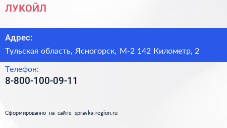 ЛУКОЙЛ по адресу Тульская область, Ясногорск, М-2 142 Километр, 2 в дальнейшем Организация, размещена в следующих категориях: